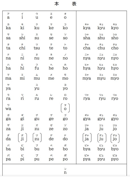 「ち」は「chi」、「ふ」は「fu」とするなど、社会生活で広く用いられているヘボン式をベースとした表記を採用する。