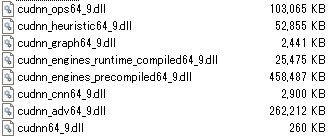 CUDAの12.1及び12.5では添付の左の画像の3ファイル CUDA12.8では右の画像の8ファイルをCUDA版katagoのホルダーに