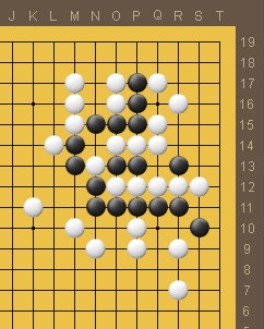 これまでの解説では、⿊9に⽩10と受けて⿊15までコウになる。⿊には右辺にそばコウがあるので⽩は勝てず、⿊コウ活きと言われてきた。