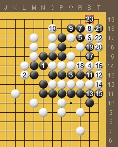 4図の⽩22で23のところへ下がるのは⿊22から両ウッテガエシをみて⿊に眼が出来る。