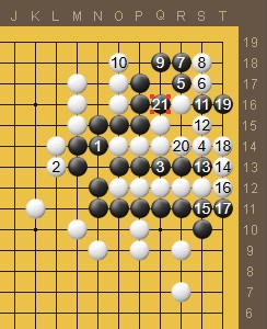 ⽩20で隅のS19とすれば⿊21アテから⿊に眼が出来る。